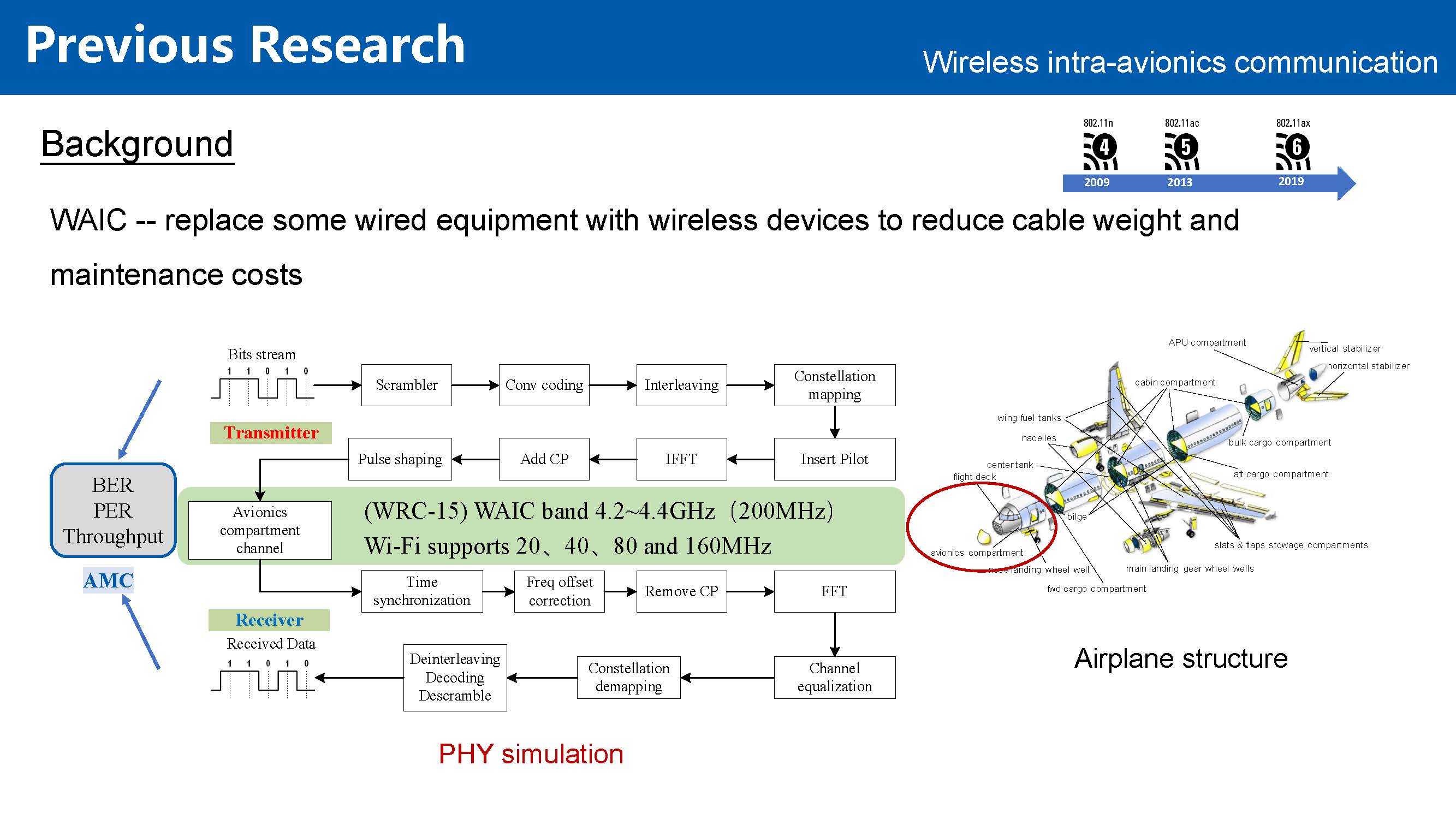 - Investigated the feasibility of relay-based wireless avionics intra-communication (WAIC) using IEEE 802.11 standard.